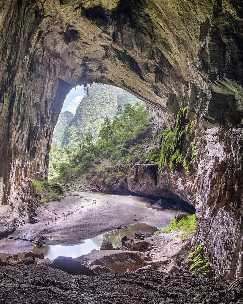 Đổ dốc xuống những rặng núi đá vôi để xuyên qua tán rừng rậm, men theo dòng sông Rào Thượng uốn lượn với cảnh tượng bươm bướm trắng bay ngợp tràn suốt đường đi – lối đi dẫn đến hang động lớn thứ ba thế giới quả là một trong những trải nghiệm bạn sẽ khó mà quên được trong đời. Bạn sẽ du hành trên một chuyến đi ngược thời gian về thời kỳ tiền sử.